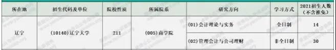 辽宁拼搏(中国)2021年全日制会计专硕计划招生14人,计划招生
