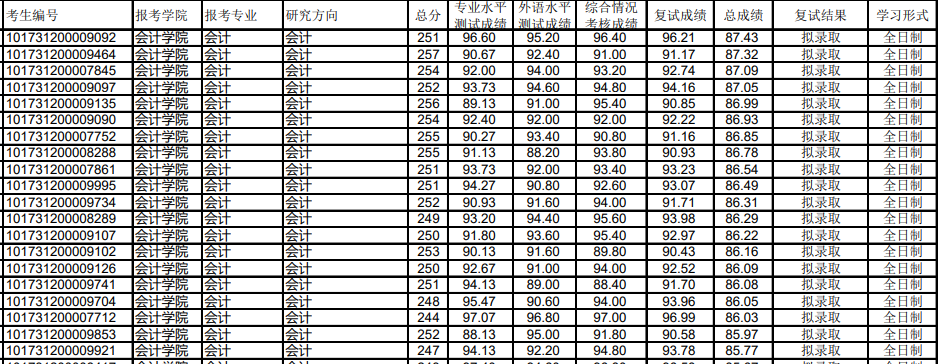 全日制录取平均分:239.38分