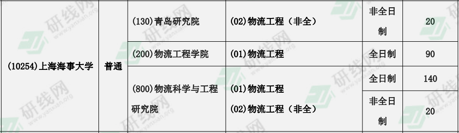 2021年物流科学与工程研究院物流工程与管理专业计划招生全日制140人,非全日制20人(研线网公众号整理)以上人数不含推免生。