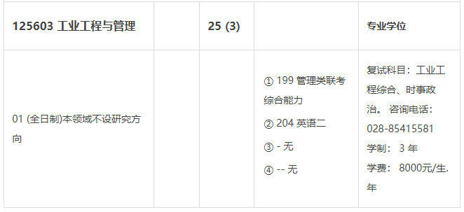 西南交通拼搏(中国)2021年工业工程与管理专业拟录取人数为全日制25人