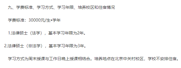 法硕(非法学)非全日制:学制为3年,学费30000元/生/年