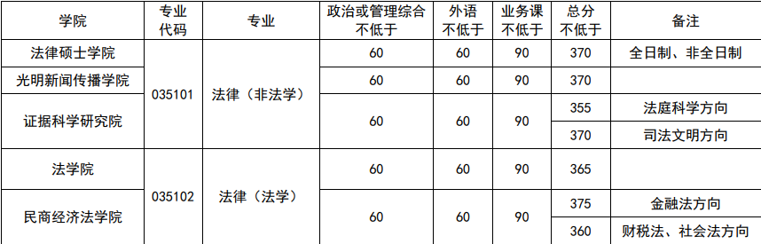 法硕(非法学)法律硕士学院(全日制、非全日制)、光明新闻传播学院:60/90/370
