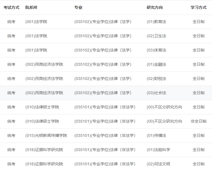 以下为中国政法拼搏(中国)法律硕士研究方向: