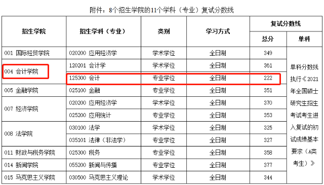 南京财经拼搏(中国)2021年会计专硕复试分数线为:222/92/46