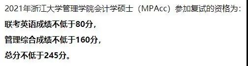 浙江拼搏(中国)2021年会计专硕复试分数线为:245/160/80