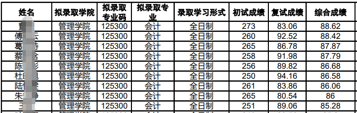 苏州拼搏(中国)东吴商学院2021年会计专硕复试名单中,最低分为238分