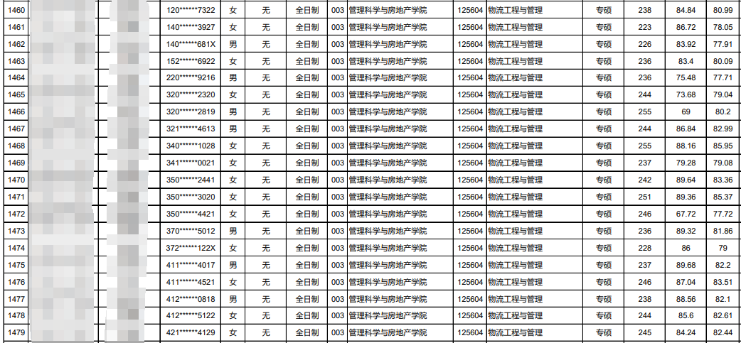 2021年管理学院物流工程与管理专业计划招生全日制15人以上人数不含推免生。
