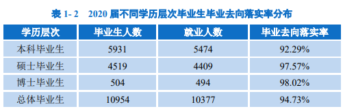 2020 届毕业生共计10954人。其中硕士毕业生 4519人,占毕业生总人数的41.25%