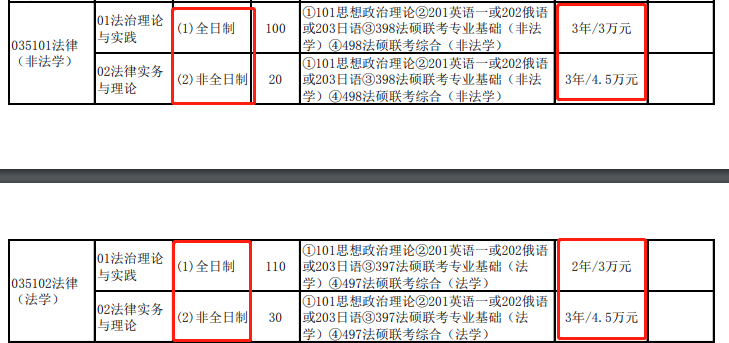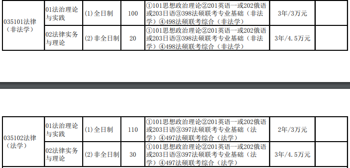 法硕(非法学)全日制:学制为3年,学费10000元/生/年