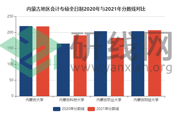 | 内蒙古地区会计专硕全日制2020年与2021年分数线对比 | ||