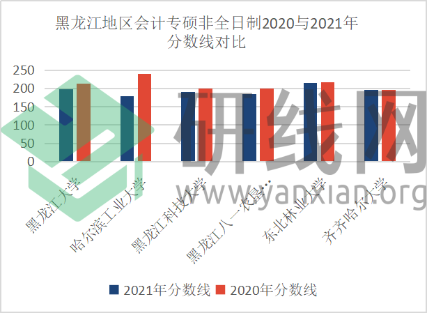 | 黑龙江地区会计专硕非全日制2020与2021年分数线对比 | ||