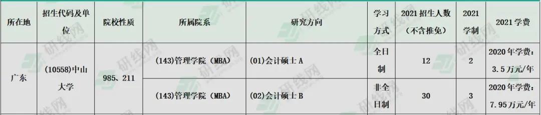 中山拼搏(中国)全日制会计专硕学制学费:学制为2年,2020年学费为3.5万元/年;非全日制会计专硕学制学费:学制为3年,2020年学费为7.95万元/年
