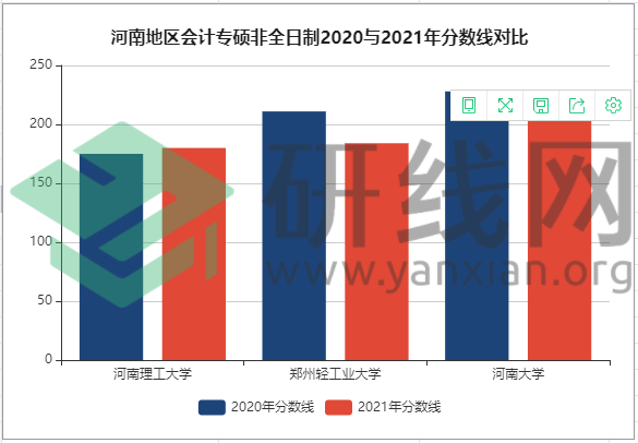 | 河南地区会计专硕非全日制2020与2021年分数线对比 | ||