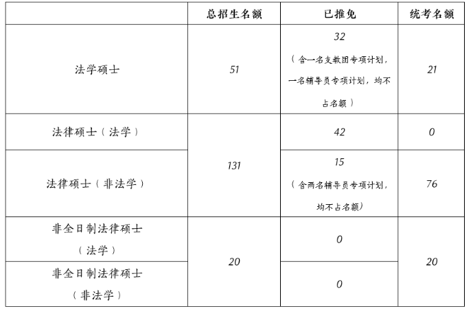2021年法律(法学)拟招生人数是20人,非全日制录取6人