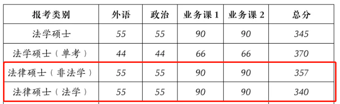 法律硕士(非法学)2021年复试分数线:55/55/90/90/357
