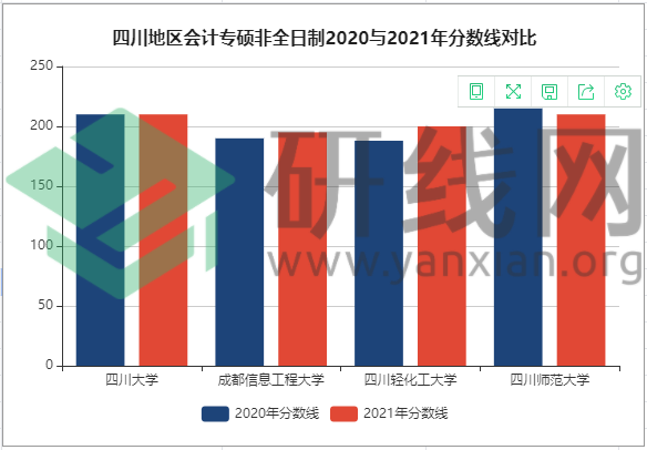 | 四川地区会计专硕非全日制2020与2021年分数线对比 | ||