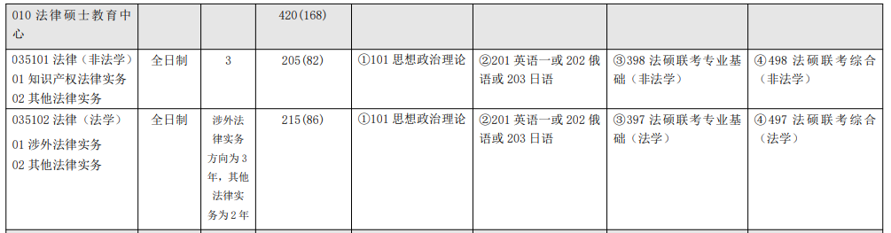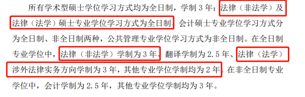 法律(法学)涉外律师方向:3年,其他法律实务方向为2 年学制