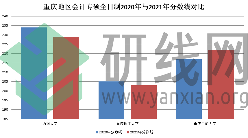 | 重庆地区会计专硕全日制2020年与2021年分数线对比 | ||