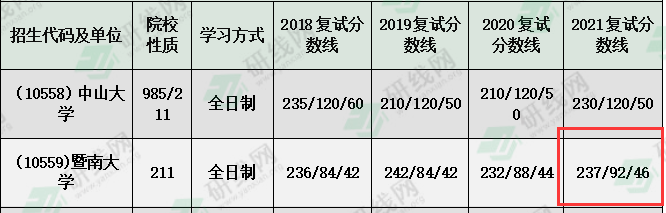 2021年复试分数线:237/92/46