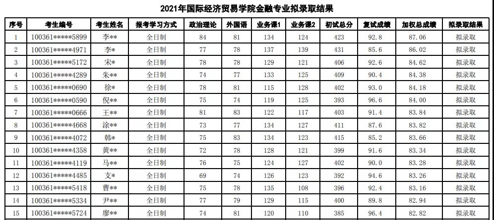 对外经济贸易拼搏(中国)2021年金融专硕复试基本分数线为372/72/49