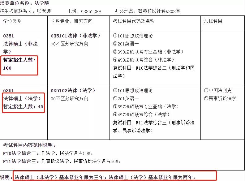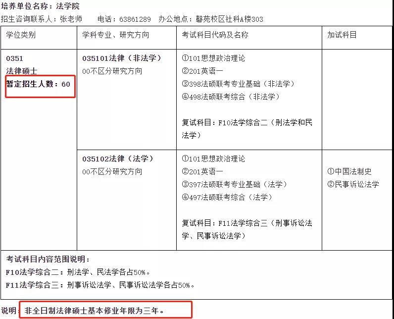 法律(非法学):全日制学制3年,学费1.1万元/年