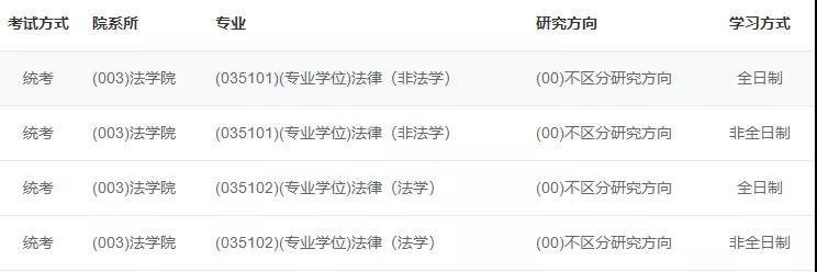 法律(非法学):非全日制学制3年,学费1.9万元/年