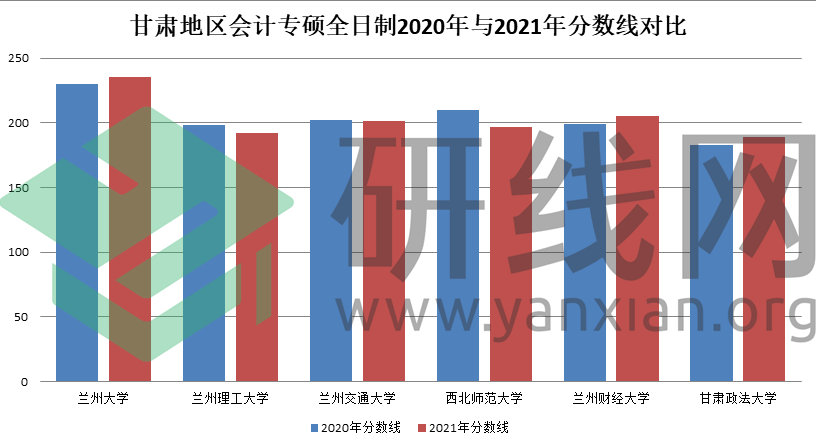 | 甘肃地区会计专硕全日制2020年与2021年分数线对比 | ||