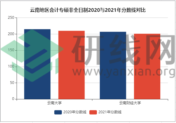 | 云南地区会计专硕非全日制2020与2021年分数线对比 | ||