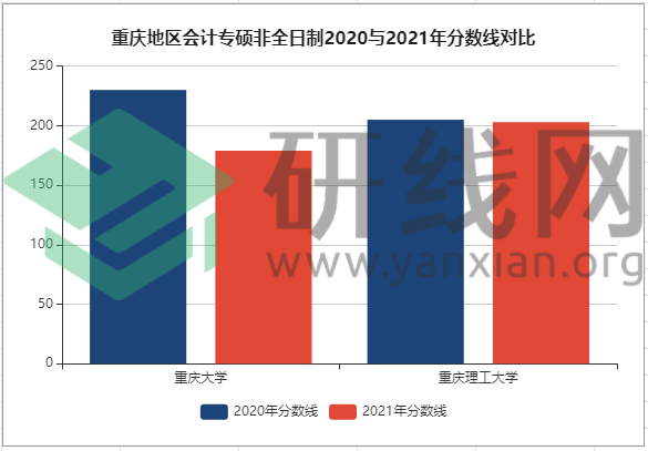 | 重庆地区会计专硕非全日制2020与2021年分数线对比 | ||