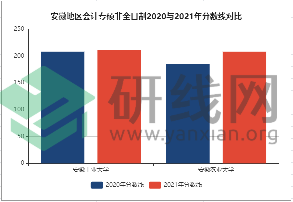| 安徽地区会计专硕非全日制2020与2021年分数线对比 | ||