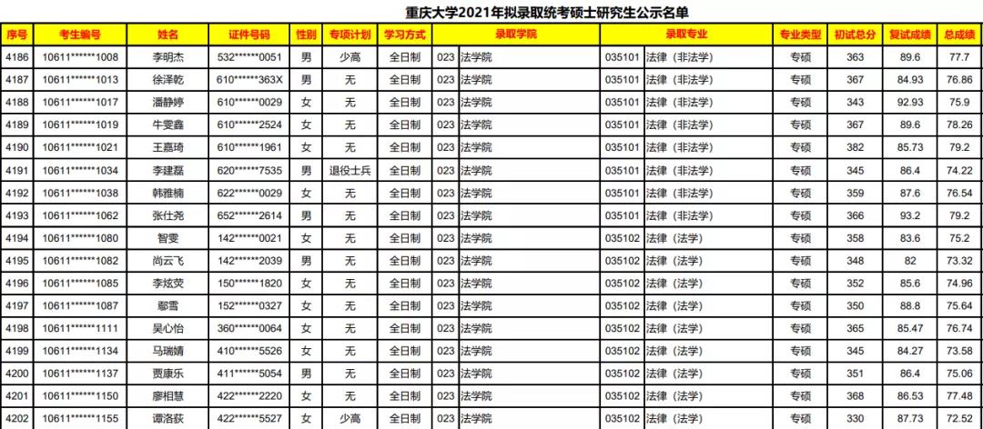 重庆拼搏(中国)2021年法律硕士录取情况: