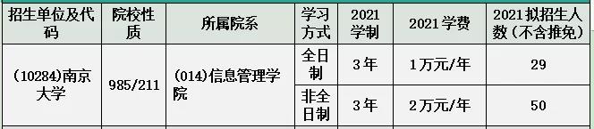 2021年图书情报硕士专业计划招生全日制29人,非全日制50人以上人数不含推免生。