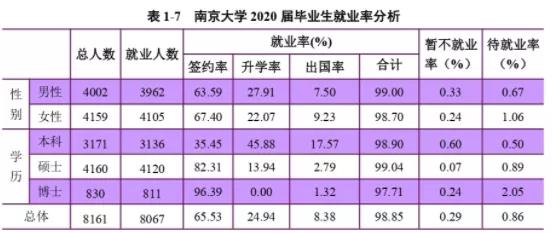 南京拼搏(中国)2020届毕业生总体就业率为98.85%,暂不就业率(拟国内升学、拟出国等)为0.29%,待就业率为0.86%。其中本科毕业生就业率为98.90%,硕士毕业生就业率为99.04%,博士毕业生就业率为97.71%。( 数据截止时间: 2020年11月30日)
