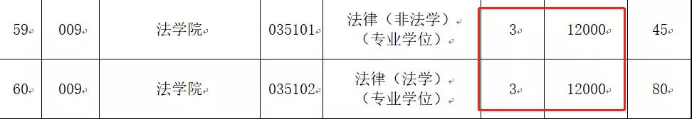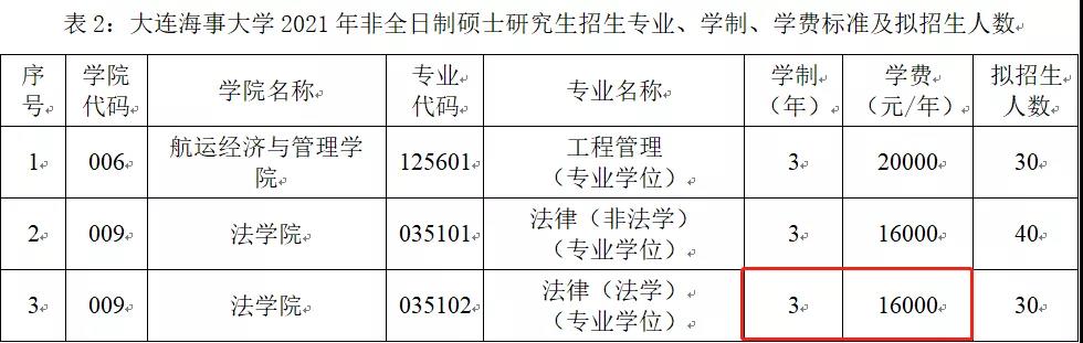 2021年法律硕士非全日制学费16000元/年,学制3年