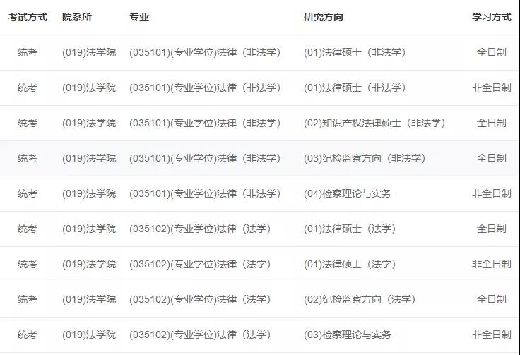 法律(非法学):非全日制学制3年,学费20000元/生·年