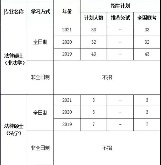 2021年全日制法律(法学)拟招生人数是3人