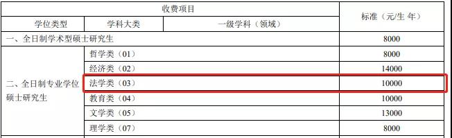 法律(非法学):全日制学制3年,学费10000元/生/年
