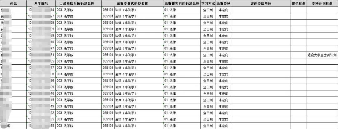 法律(非法学):全日制录取32人,最高分395分,最低分351分。