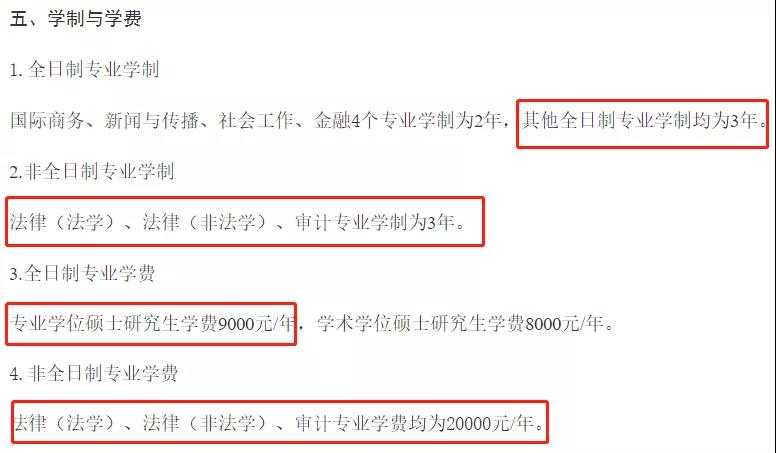 法律(法学、非法学):全日制学制3年,学费9000元/年