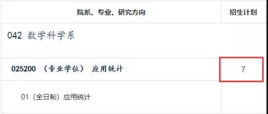 2022年应用统计硕士专业计划招生全日制7人。