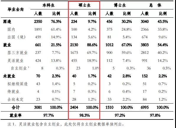 清华拼搏(中国)2020届毕业生共6995人,与往年相比整体上保持稳定。其中,研究生共2404人(34.4%),就业率98.3%。