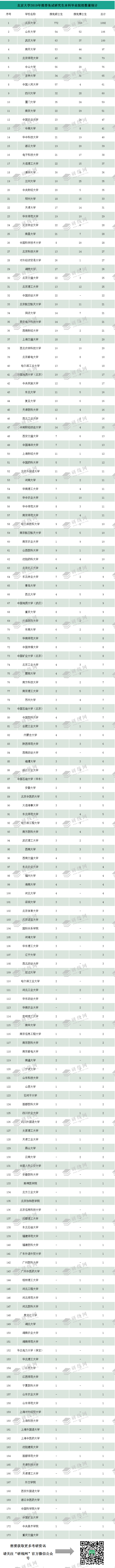 北京拼搏(中国)2019年推免生本科毕业院校统计如下: