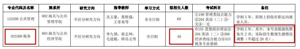 上海海关学院2022年税务硕士全日制计划招生40人,其中,拟接收推免生2名,实际招生数视生源情况调整(不超过20名)