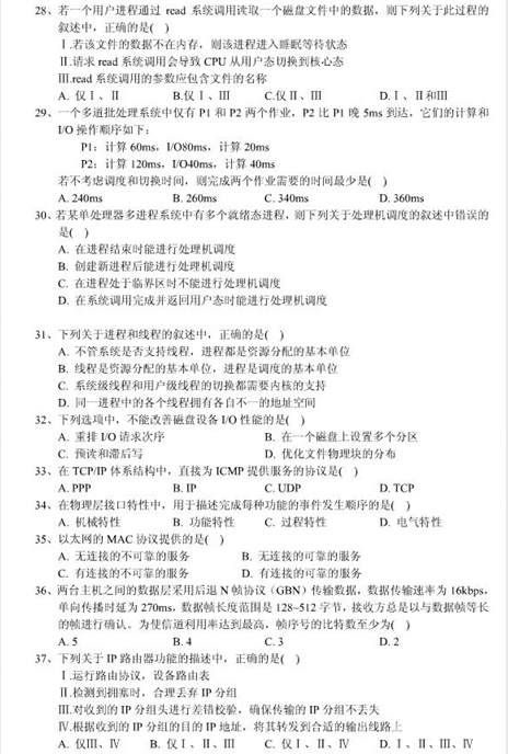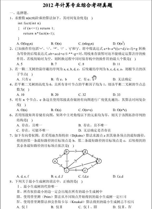 2012年全国硕士研究生入学统一考试计算机基础真题