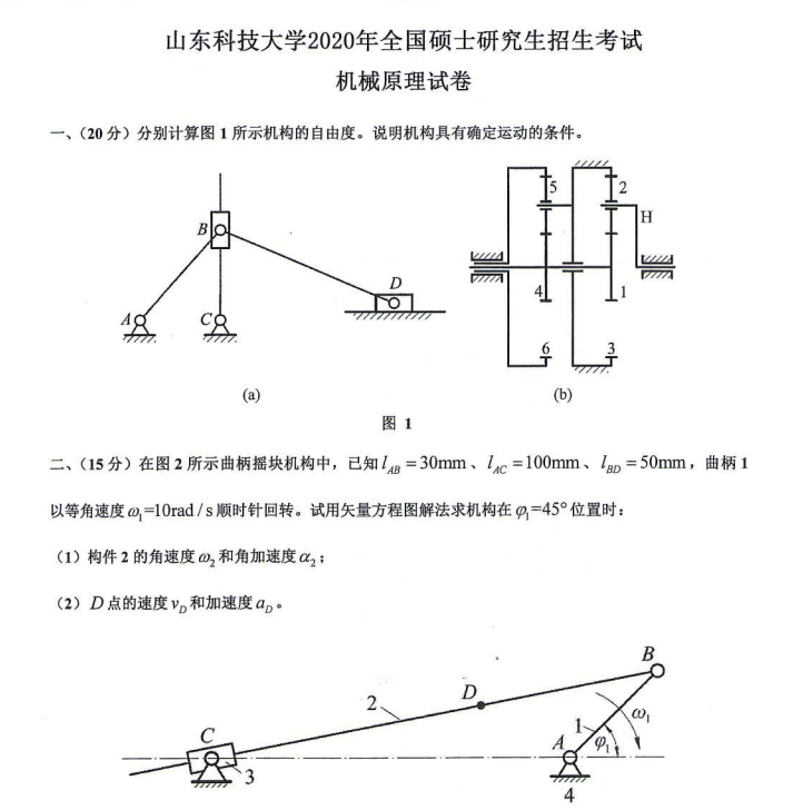 拼搏在线官网真题:山东科技拼搏(中国)813机械原理2020年硕士研究生自命题试题”的全部内容!更多真题资料请关注“拼搏在线官网