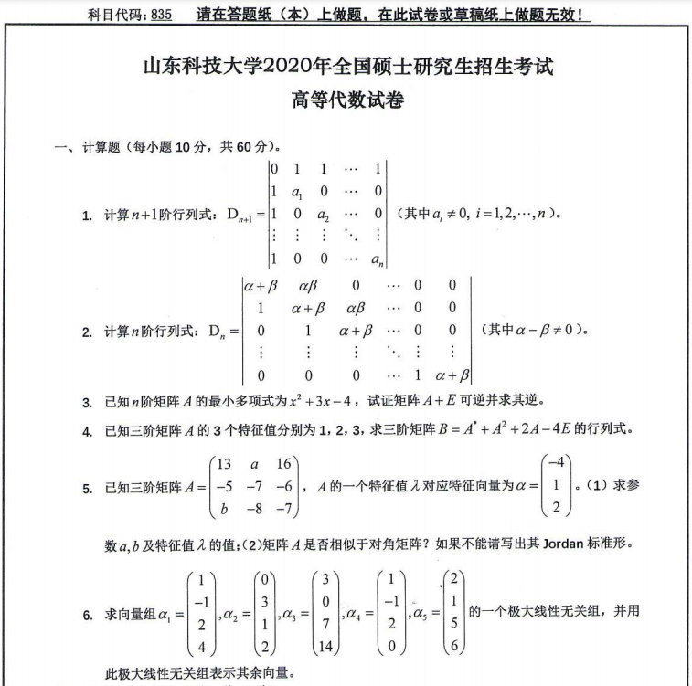 拼搏在线官网真题:山东科技拼搏(中国)835高等代数2020年硕士研究生自命题试题”的全部内容!更多真题资料请关注“拼搏在线官网