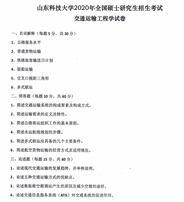 拼搏在线官网真题:山东科技拼搏(中国)838交通运输工程2020年硕士研究生自命题试题”的全部内容!更多真题资料请关注“拼搏在线官网