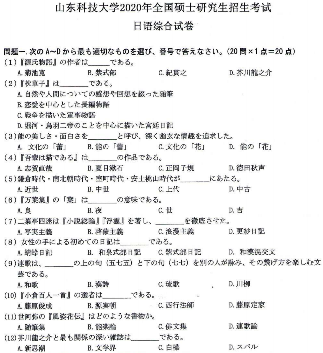 拼搏在线官网真题:山东科技拼搏(中国)842日语综合2020年硕士研究生自命题试题
