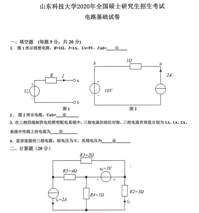 拼搏在线官网真题:山东科技拼搏(中国)844电路基础2020年硕士研究生自命题试题