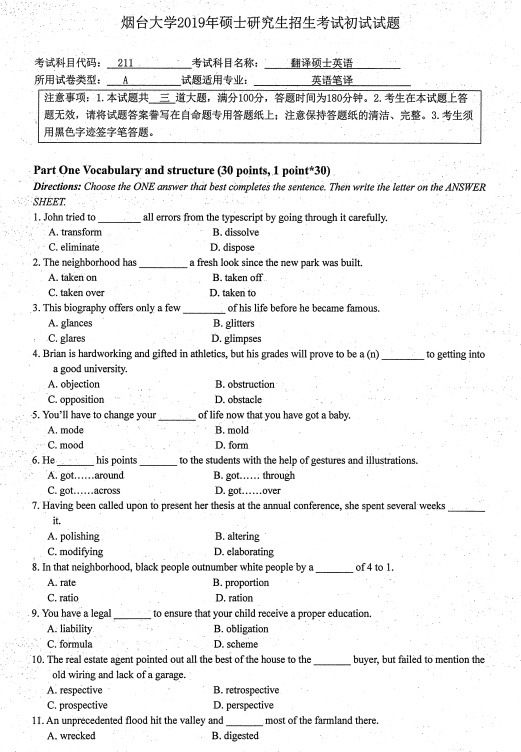 以上就是小编分享“拼搏在线官网真题:2019年烟台拼搏(中国)外国语学院硕士研究生招生考试初试自命题-211翻译硕士英语”的全部内容内容,想了解更多拼搏在线官网相关信息,请持续关注研线网。